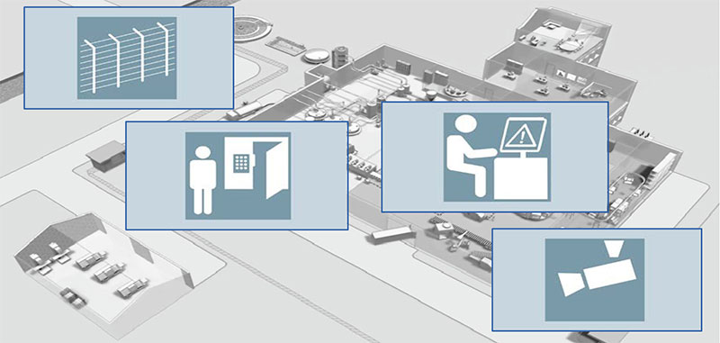 The plant security, network security and system integrity elements form the foundation for the industrial security concept. Plant security puts in place the conditions necessary to ensure that the technical I T security measures implemented cannot be circumvented by other means. Plant security measures include physical access protection infrastructure, such as barriers, turnstiles, cameras and card readers. Organizational measures, most notably a security management process to ensure the security of a plant, is also included. Physical separation of different production areas with differentiated access authorizations and physical access protection for critical automation components.