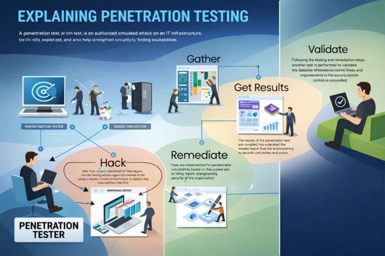 A penetration test (pen test) is an authorized simulated cyber attack performed to evaluate the security of systems, networks, applications, and infrastructure.